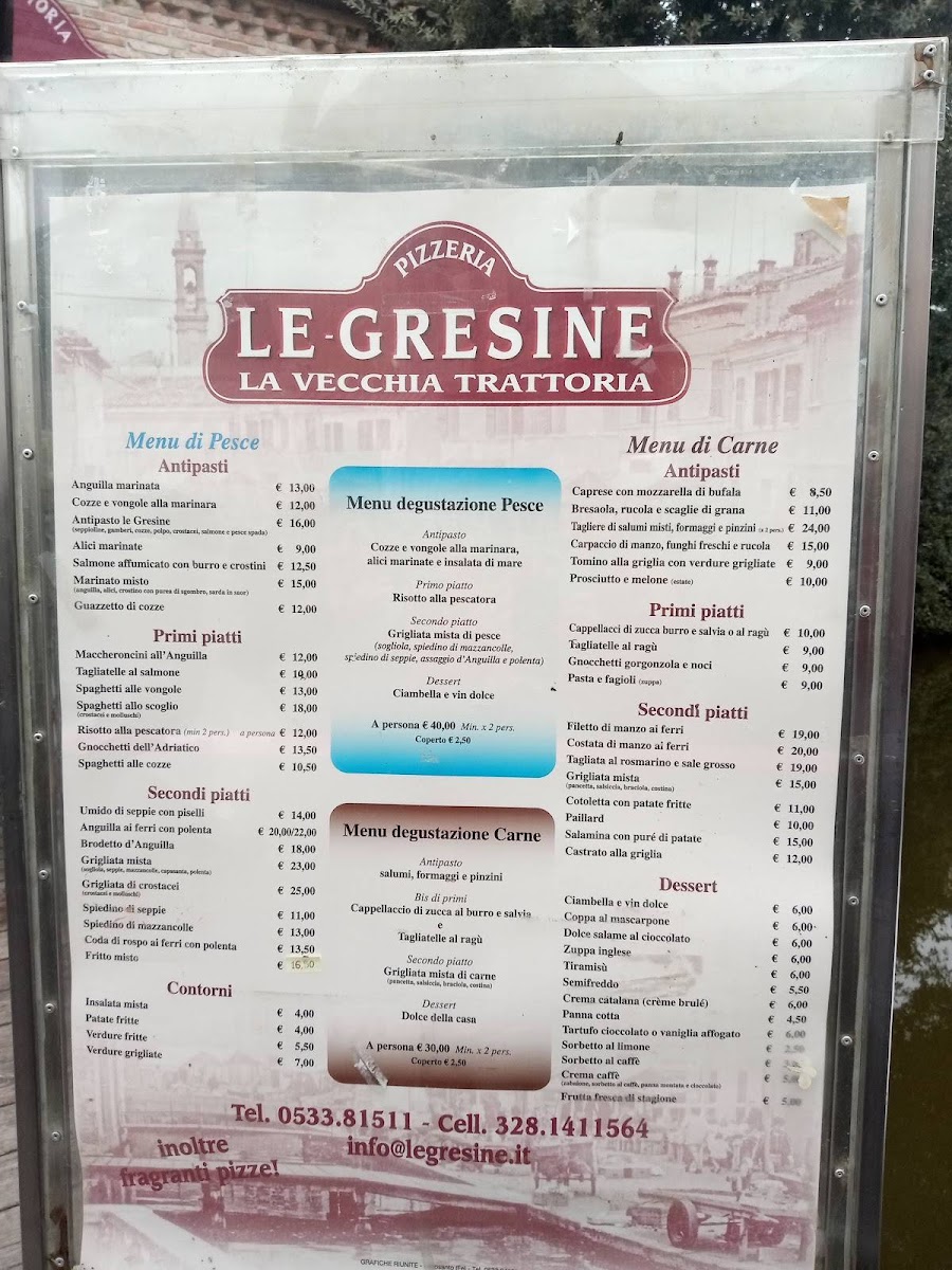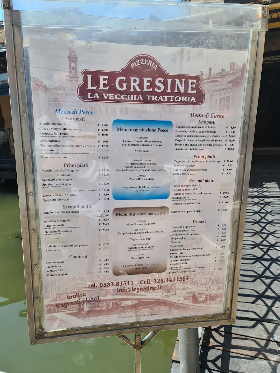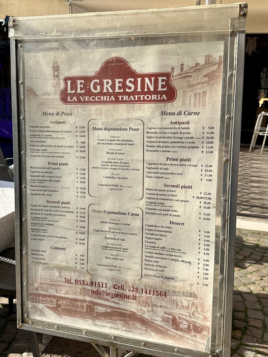 Introducing the menu at Le Gresine, nestled in the picturesque Parco Delta del Po in Comacchio, Italy, is a culinary journey worth taking. This delightful restaurant charms guests with its serene canal-side terrace, offering a vibrant yet welcoming atmosphere. Renowned for its fresh and flavorful dishes, Le Gresine delights diners with a variety of enticing options, including the unforgettable eel with polenta and the delectable pumpkin ravioli. The attentive service provided by Carlo and Gretta enhances the dining experience, making each meal feel special.