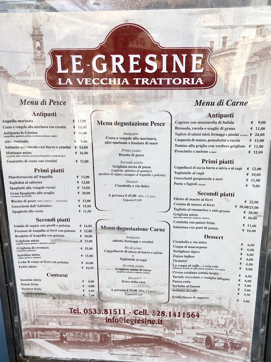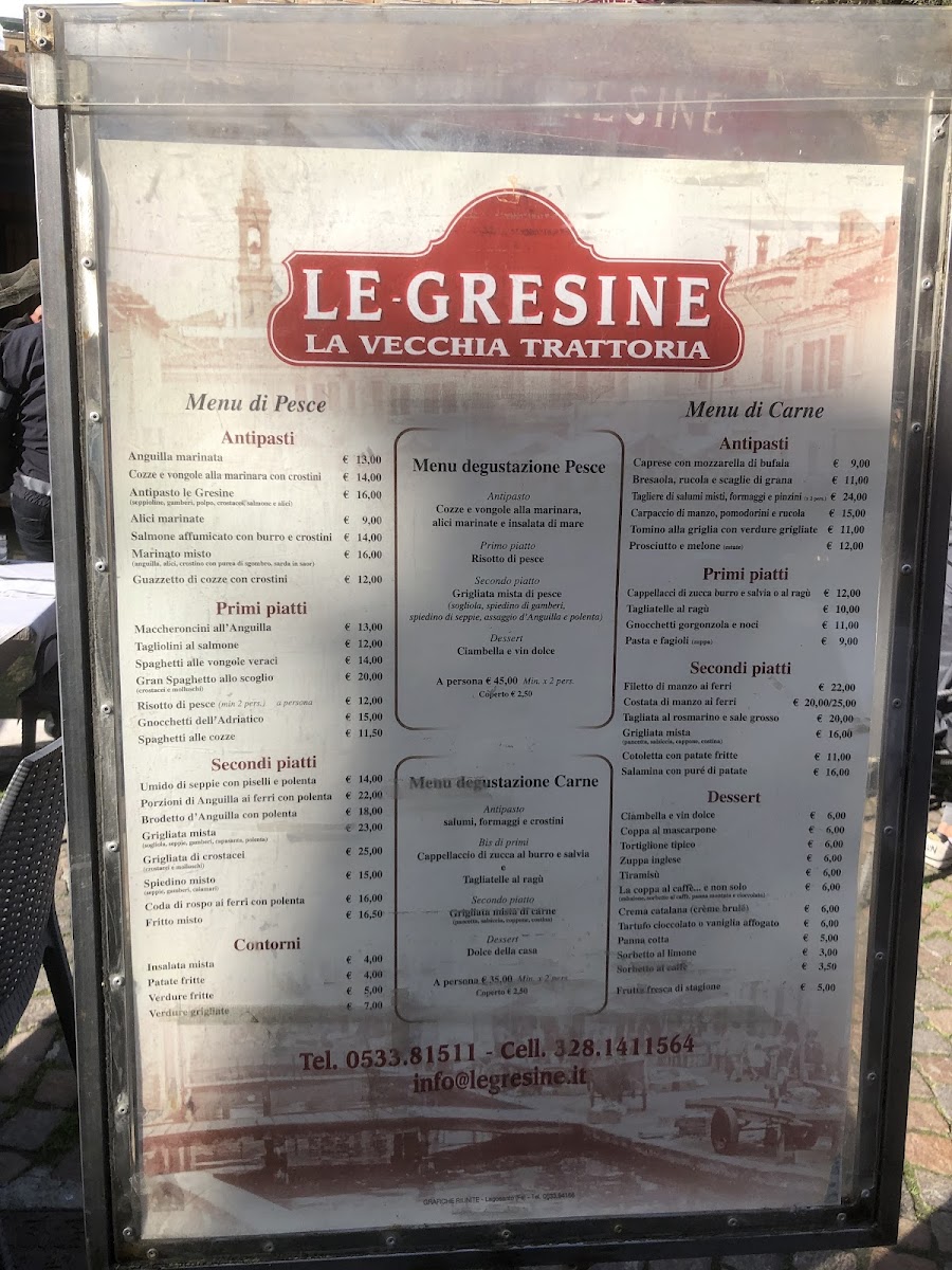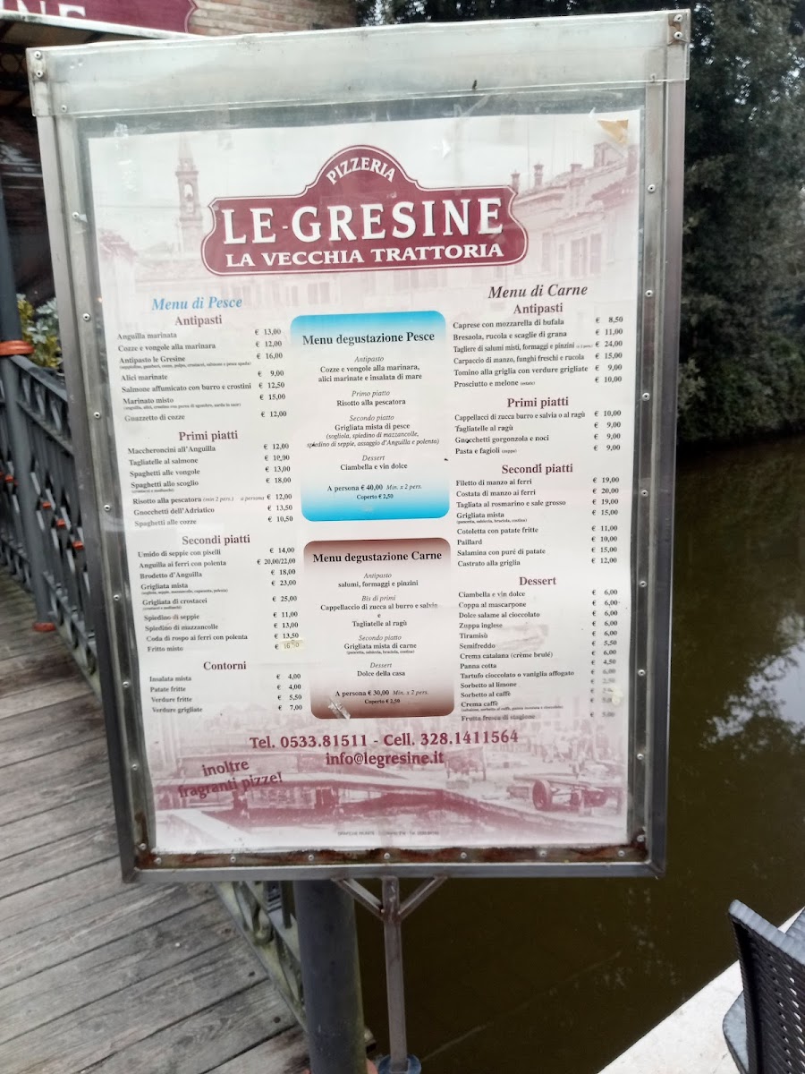Introducing the menu at Le Gresine, nestled in the picturesque Parco Delta del Po in Comacchio, Italy, is a culinary journey worth taking. This delightful restaurant charms guests with its serene canal-side terrace, offering a vibrant yet welcoming atmosphere. Renowned for its fresh and flavorful dishes, Le Gresine delights diners with a variety of enticing options, including the unforgettable eel with polenta and the delectable pumpkin ravioli. The attentive service provided by Carlo and Gretta enhances the dining experience, making each meal feel special.